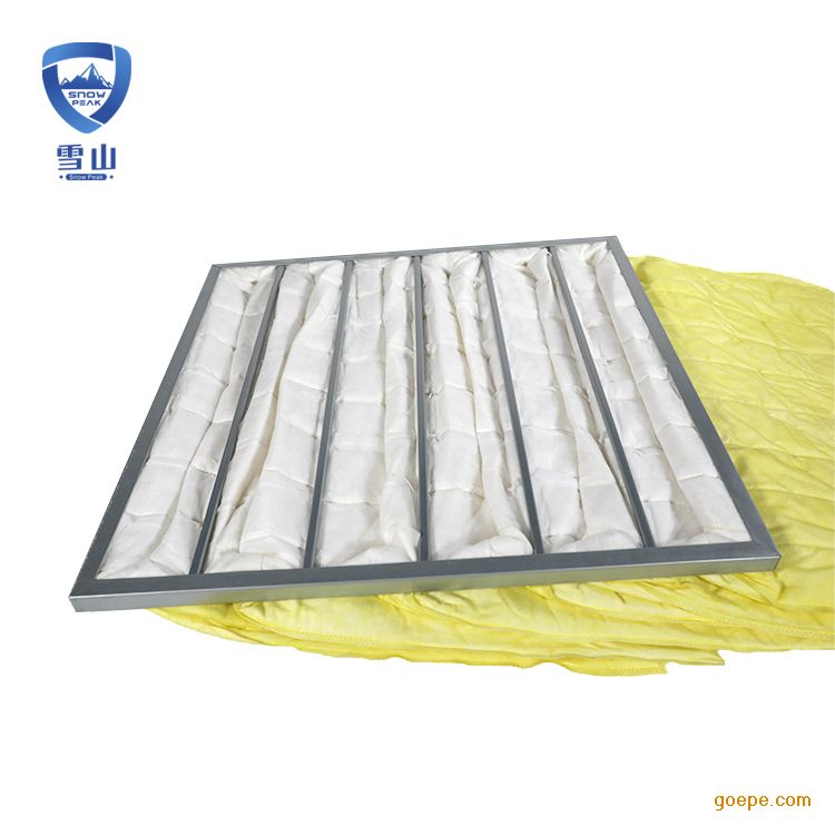 中效袋式过滤器雪山F8中效过滤器采用坚固的防漏框架结构,每个滤袋采用双层U型铝合金加强支撑以及“V”形滤袋结构。